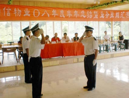 “业主满意是我们永远的追求!”一阵激昂的公司宣言拉开了成都勤信物业服务有限公司“2008年半年总结暨业务技能汇演”的序幕。会上,总经理周雪平对公司及全体员工在遭遇地震天灾、物价上涨等多种困难的上半年中所取得的成绩表示了肯定,同时也对下半年的工作提出了期望。