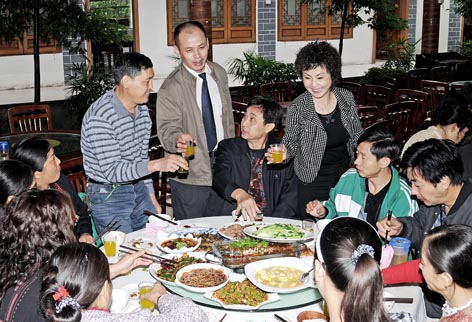 同日上午8:30,三辆载着名士公馆160多名业主及家人的公交车徐徐开出小区,始向三圣乡满天星花园,一路上,业主门情绪高涨,相互问候,叙诉友情,半个多小时,到达目的地——满天星花园。