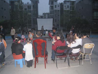 为进一步贯彻落实市房产管理局、市物业管理协会《关于进一步加强和谐物管构建工作的通知》文件精神,规范和提升物业服务品质,引导业主依法维权、有序参与、民主管理物业,营造和谐物管创建氛围,四川华玮物业管理有限公司于2009年4月9日,在学府润园开展了以“和谐学府”为主题的物业法规进社区活动,同时,开展了免费电影周活动,分批次在各个小区放映。