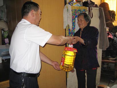 三、4月22日,丰源物业在各个安置房小区内积极开展“帮困送温暖活动”。西汇锦苑物业服务中心组织了义务清洁队和义务维修队深入小区困难户义务进行房屋清扫和维修工作,并为困难户送去粮、油等生活必须品。