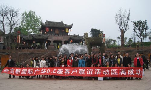 4月17日整个客户联谊活动从上午9:30准时开始至下午5:00结束,上午我们组织客户游览了黄龙溪,下午组织客户进行了互动小游戏、拔河比赛,通过最后对客户进行的活动意见征询结果看,客户对此次活动的满意率为100%。当然,客户也对我们的组织活动提出了不少的宝贵意见、建议,我们将在此后进行的客户联谊活动中,对现在仍不太成熟的方面进行提高、完善,希望以后能将客户联谊活动举办的更加出色、更具有项目特色。