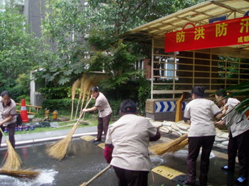 服务中心结合小区实际,首先在防洪防汛方面加大了宣传力度,同时对小区排水系统和大型乔木进行了全面清理、加固,针对防洪防汛工作制定了完善的《防洪防汛应急预案》、《防洪防汛演习方案》。