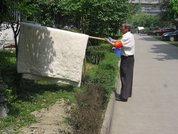 社区工作人员彭旭东接受记者采访时说:社区和物管相互协调,都是为居民有个和谐居住的环境,我们文明劝导分6个组,共36人,每周二进行走进小区查找不文明行为,对不纠正的将在每月两次的放电影前给曝光。让广大居民来监督不文明行为。负责物管的夏主任对记者说:以前有的居民有不文明行为,我们去制止对方根本不听,现在社区成立了文明劝导队,真的帮助我们以后更好的为业主服务了。(乔万兴摄影报道)