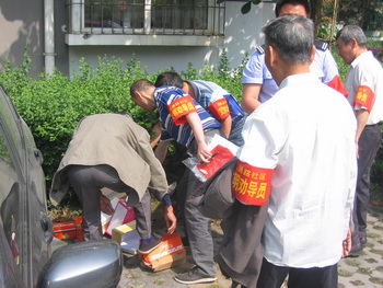记者采访得知:为了是广大居民有个良好的和谐居住环境,政通路社区书记张波和主任李华燕经过反复走访居民决定成立--文明劝导队。从上个月开始筹备,经过走访最终确定了36名有热情并且愿意义务为居民服务的老年人担任义务文明劝导员。上午9点10分,张书记和李主任给文明劝导员下发袖标。9点42分,文明劝导队开始出发进行第一次巡查。在巡查过程中共指出不文明行为的问题23件,有不少问题现场得到制止。记者在现场看到,文明劝导员对工作的认真是一些不文明行为的居民真的服了。