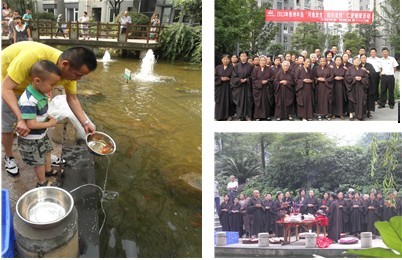 此次活动邀请了佛门弟子25人念经说法,以放生锦鲤鱼苗为主,其中物业服务中心、三和烤鱼(商铺)以及业主等100多人放生鱼苗2000多条。在仁爱者的手中,鱼儿们欢畅地游进了香洲半岛的中庭水池,在这里快快乐乐的安了家,给小区增添了生命的气息,自然的纯净。本次活动得到广大业主的积极参于与认可,大家一致表示要让这种共建家园、珍爱生命的行为在小区内得到广泛延续!