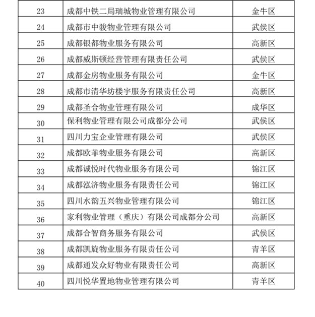 2017年成都市物业服务品牌企业评定及复核结果公示