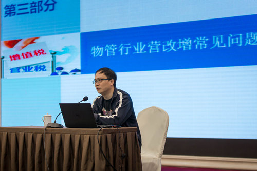 讲座中,付鸿雪副处长首先介绍了国家“营改增”政策出台的背景及全省“营改增”前期运行情况。付鸿雪副处长指出,“营改增”政策通过统一税制,贯通服务业内部和二、三产业之间抵扣链条,从制度上消除重复征税,使税收的中性作用得以充分发挥,有利于营造公平竞争的市场环境,对完善我国财税体制有长远意义。刘伟老师结合物业管理行业实际,对 “营改增”的基本政策及在新政施行中的重点注意事项进行了全面的解读。