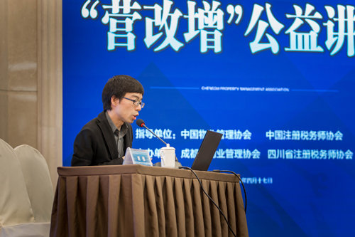 4月17日下午,在中国物业管理协会、中国注册税务师协会指导下,成都市物业管理协会联合四川省注册税务师协会,在成都天府国际金融中心成功举办了成都市物业管理行业“营改增”公益讲座。四川省注册税务师协会会长张炜、副会长杨原波,成都市物业管理协会常务副会长、秘书长巫庆敏出席活动。讲座邀请四川省国家税务局货物和劳务税处付鸿雪副处长、刘伟老师为全市400余位物业管理企业负责人及财务负责人,就企业如何实现“营改增”政策的平稳过渡进行了权威的讲解答疑。讲座由成都市物业管理协会副秘书长苟强主持。