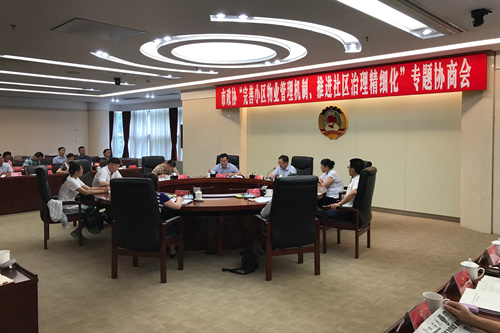 629日下午,市政协召开“完善小区物业管理机制、推进社区治理精细化”专题协商会议。市政协副主席侯一平主持会议并讲话。市委政法委常务副书记戴德军,市政协副秘书长王泉,以及市政协社法民宗委、市公安局、市民政局、市房管局、市政府法制办等部门负责人,部分区(市)县政协、街道办事处和社区有关负责同志,部分市政协委员和相关专家学者出席会议。